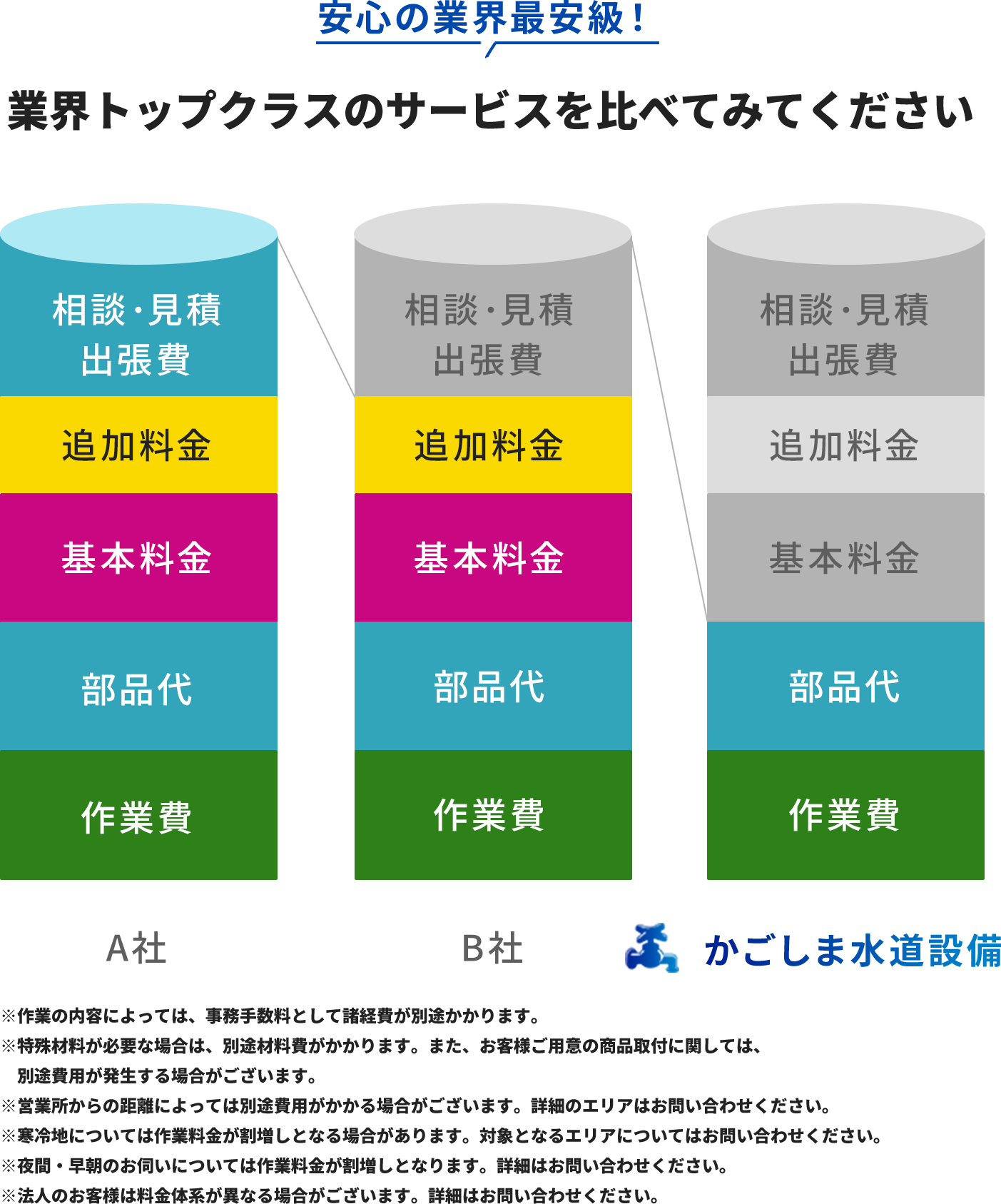 かごしま水道設備では、お見積りの際に正確な金額をお伝えし、作業後に金額を変更することは