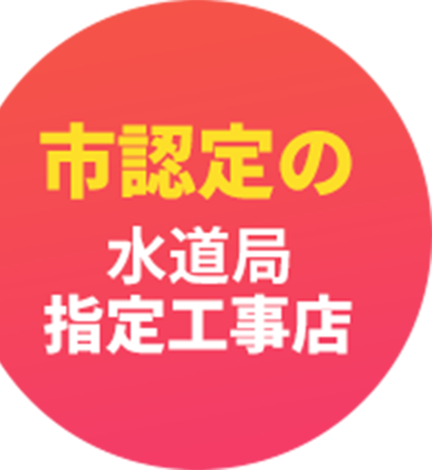 都道府県や各市町村から指定を受けた水道局指定工事店です。水道局指定工事店は、必要な機材・資材を取り揃えていて、適切な工事と正しい事務手続きを行い、誠実な対応ができると保証されている事業者になります。